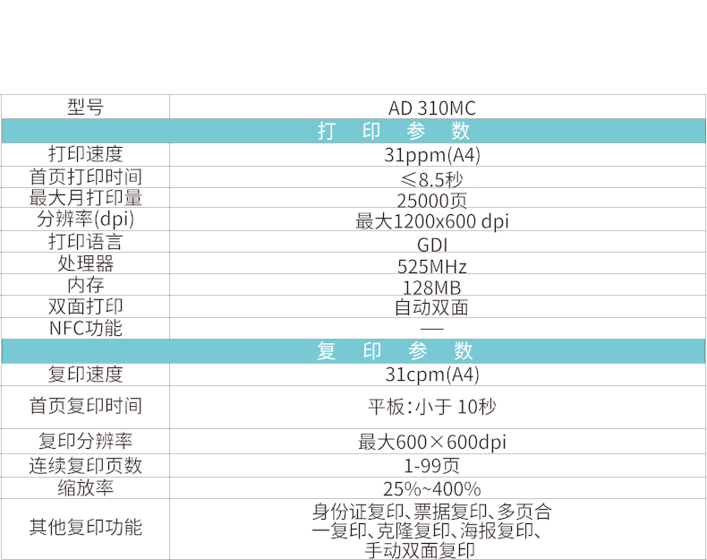 震旦打印機 A4多功能黑白一體機 AD310MC 辦公家用復(fù)印打印掃描 黑色