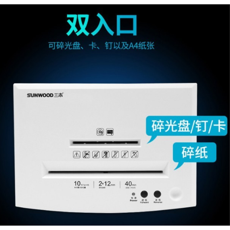 三木(SUNWOOD) SD9112碎紙機(jī),最大碎紙幅面A3,單次碎紙張數(shù)6--10張,連續(xù)碎紙時間31--40分鐘,紙箱容積21--30L,碎紙速度2.1--3.0/分鐘